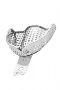 PERMA-LOCK” perforated regular stainless steel impression trays with retention rim.